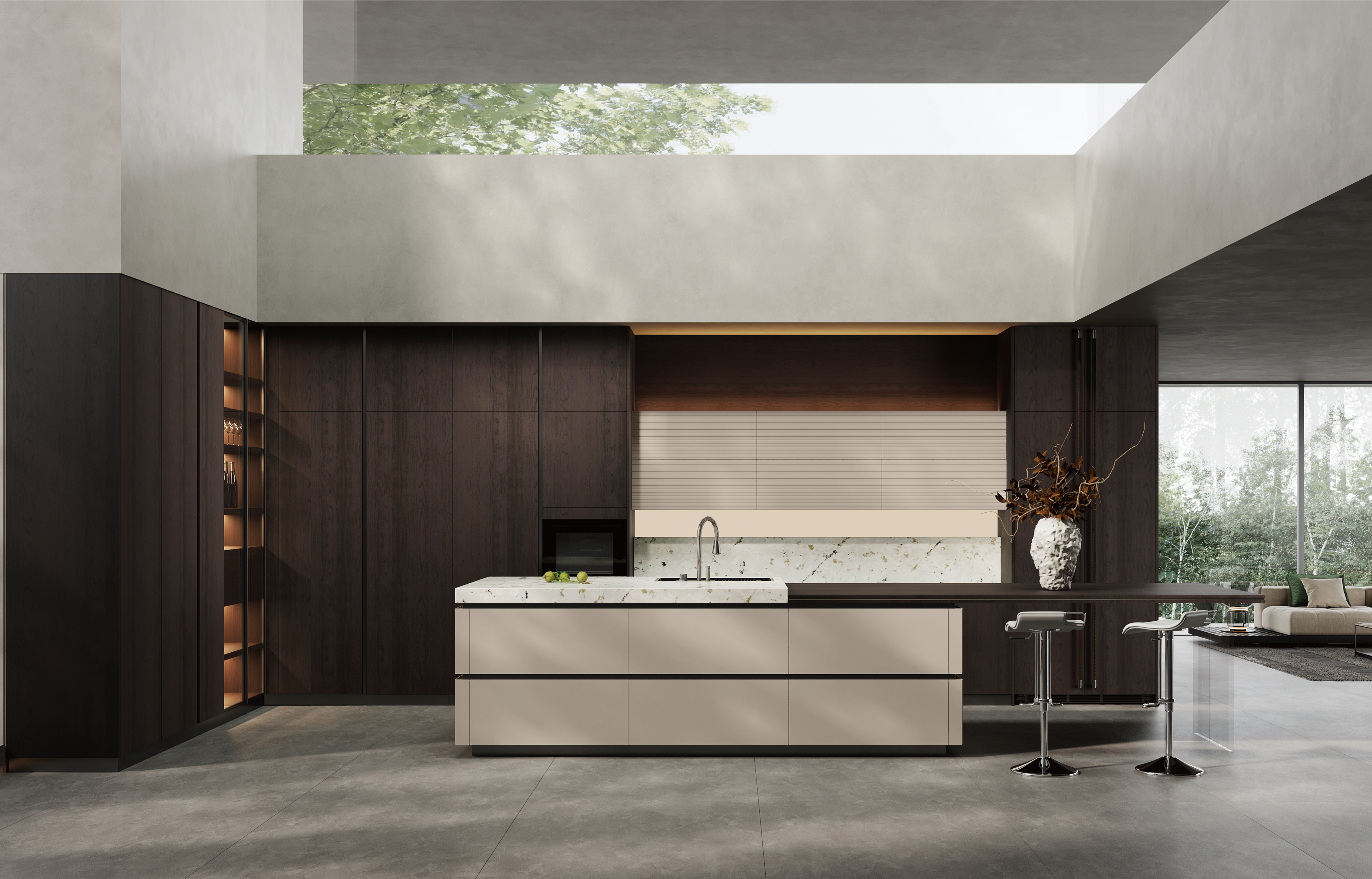 通过威客电竞厨柜量体裁柜,定制出适合主厨下厨的烹饪区和洗涤区的舒适高度。